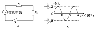 5、选择题 电阻R1、R2与交流电源按照图甲所示方式连接,R1=10 Ω,R2=20 Ω.合上开关S后,通过电阻R2的正弦交变电流i随时间t变化的情况如图乙所示.则(?)