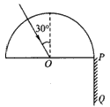 4、选择题 如图所示,半圆形玻璃砖的半径为R,光屏PQ置于直径的右端并与直径垂直,一复色光与竖直方向成α=30°角射向玻璃砖的圆心。复色光中含有a、b两种单色光,故在光屏上出现了两个光斑,玻璃砖对a、b两种单色光的折射率分别为