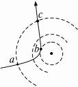 4、填空题 根据α粒子散射实验,卢瑟福提出了原子的核式结构模型,图中虚线表示原子核所形成的电场的等势线,实线表示一个α粒子的运动轨迹.在α粒子从a运动到b,再运动到c的过程中,下列说法中正确的是 ( )