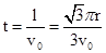 3、选择题  如图所示,半径为r的圆形空间内,存在着垂直于纸面向里的匀强磁场,一个带电粒子(不计重力),从A点以速度v0垂直磁场方向射入磁场中,并从B点射出,∠AOB=1200,则该带电粒子在磁场中运动的时间为(?)