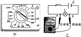 1、简答题 多用电表的下半部分如图甲所示,标有“2.2V0.25A”字样的小灯泡已接入电路,当多用电表的两表笔分别与小灯泡两端的接线柱a、b相接(如图乙所示),下列想法合理的是______.