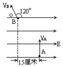 m/s,方向和电场线方向成120°角.已知A、B两点间沿电场线方向的距离为15cm,求
