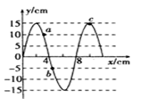 ,故A正确;发生明显衍射现象条件是障碍物的尺寸与波长相差不大或者比波长小;波长为0.08m,远小于障碍物尺寸,故不能发生明显衍射现象;故B错误;由图知a、b、c的位移大小分别为10cm、5cm和15cm,三个质点都做简谐运动,由