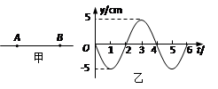 3、计算题  如图甲所示,一列简谐横波以1m/s的速度沿绳子由A向B传播,A、B间的距离为3m。从波传到A点开始计时,质点A的振动图象如图乙所示。试求:
