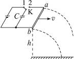 5、简答题 两条光滑的水平金属导轨彼此平行,置于桌边,金属棒ab架在两导轨端点上并与导轨垂直,导轨区域内有竖直向下的匀强磁场,导轨另一端与电池、电容器连成电路,如图15-2-11所示.已知金属棒的质量m=5×10-3kg,两导轨间距L="1.0" m,电池电动势E="16" V,电容器的电容量C="200" μF,磁场的磁感应强度B="0.5" T,金属棒在通电后受安培力作用而平抛出去,下落高度h="0.8" m,抛出落地水平位移S="0.064" m.试求开关K先接1,再接2,金属棒被抛出后电容器上电压的数值.