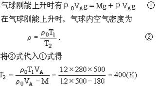 ,(设气球内部空气温度变化时其容积保持不变),气球质量(球内空气质量不计在内)为180Kg.地面大气温度为280K,大气密度为1.2kg/