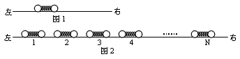 (2)如图2,将N个这样的振子放在该轨道上。最左边的振子1被压缩至弹簧为某一长度后锁定,静止在适当位置上,这时它的弹性势能为E0。其余各振子间都有一定的距离。现解除对振子1的锁定,任其自由运动,当它第一次恢复到自然长度时,刚好与振子2碰撞,此后,继续发生一系列碰撞,每个振子被碰后刚好都是在弹簧第一次恢复到自然长度时与下一个振子相碰。求所有可能的碰撞都发生后,每个振子弹性势能的最大值。已知本题中两球发生碰撞时,速度交换,即一球碰后的速度等于另一球碰前的速度。