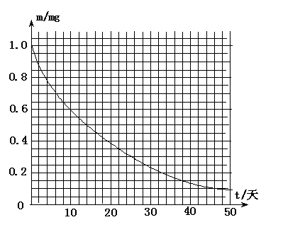 本题解析:根据方程式两端质量数,质子数守恒,可得,放出的这种电子为正电子,从图中可知1mg的