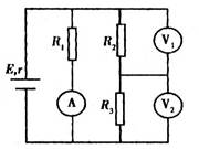 4、选择题 在如图所示的电路中,电池的电动势为E,内阻为r,R1为金属电阻、R2为光敏电阻、R3为热敏电阻。设电流表A的读数为I,电压表V1的读数为U1,电压表V2的读数为U2,三个电阻中仅有一个电阻的阻值发生变化,则下面的分析正确的是( )