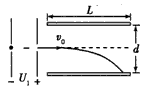 5、计算题 一束电子流在U1=500 V的电压作用下得到一定速度后垂直于平行板间的匀强电场从两板中央飞入,如图所示。若平行板间的距离d=1 cm,板长L=5 cm,问至少在平行板上加多大电压U2才能使电子不再飞出平行板?