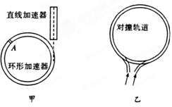 3、选择题 2010年初欧洲强子对撞机在排除故障后重新启动,并取得了将质子加速到1.18万亿eV的阶段成果,为实现质子对撞打下了坚实的基础,质子经过直线加速器加速后进入半径一定的环形加速器中,质子每次经过位置A时都会被加速(图甲),当质子的速度达到要求后,再将它们分成两束引导到对撞轨道中,在对撞轨道中两束质子沿相反方向做匀速圆周运动,并最终实现对撞(图乙),质子是在磁场的作用下才得以做圆周运动的,下列说法中正确的是( )