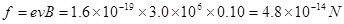 1、填空题 电子的速率V=3.0×106 m/s沿着与磁场垂直方向射入B=0.10T的匀强磁场中,它受到的洛伦兹力是??N.