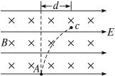 1、简答题 如图15-4-6所示,场强为E的匀强电场和磁感应强度为B的匀强磁场相互正交,一个质子以速度v0以跟E、B都垂直的方向从A点射入.质子质量为m,电荷量为e,当质子运动到c点时,偏离入射方向的距离为d.则质子在c点的速率为多大?