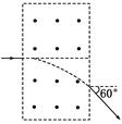 1、选择题 如图7所示,在一矩形区域内,不加磁场时,不计重力的带电粒子以某初速度垂直左边界射入,穿过此区域的时间为t.若加上磁感应强度为B、垂直纸面向外的匀强磁场,带电粒子仍以原来的初速度入射,粒子飞出磁场时偏离原方向60°,利用以上数据可求出下列物理量中的( )