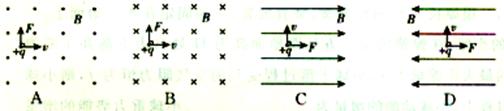 2、选择题 在下图所示的四幅图中,正确标明了带正电的粒子在磁场B中以速度v运动时所受洛伦兹力F方向的是(? )