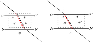 (2)李扬同学在画界面时,不自觉地将两界面aa′、bb′间距画得比玻璃砖宽度大些,如图乙所示,则他测得的折射率将______(选填“偏大”“偏小”或“不变”)