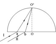 5、选择题 .如图所示,有一半圆形玻璃砖,Ⅰ、Ⅱ两束不同频率的单色光从玻璃砖底边平行射入,a、b为入射点(均在玻璃砖底边圆心O的左侧),两束光进入玻璃砖后一起射到点,