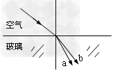 C、光从空气斜射到玻璃,由于折射率不同,a光偏折较大,b光偏折较小.所以此玻璃对a光的折射率大于对b光的折射率.则a光的传播速度小于对b光,故C错误;