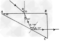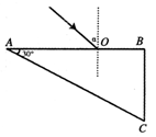 某种透明物质制成的直角三棱镜ABC,折射率为n,角A等于30°。一细束光线在纸面内从O点射入棱镜,如图所示,当入射角为α时,发现刚好无光线从AC面射出,光线垂直于BC面射出。求: