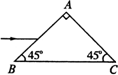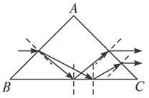 2、选择题 如图所示,ABC为一等腰直角玻璃棱镜的横截面,该玻璃临界角小于45°,一束白光平行于BC面射到AB面上,折射后能射到BC面上;该光束射出棱镜的情况是( )