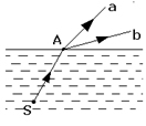 2、选择题 如图所示,水下光源S向水面A点发射一束复色光线,折射光线分成a,b两束,则下列说法正确的是(?)