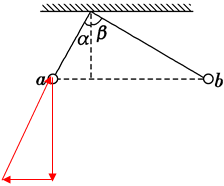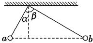 5、选择题  如图所示,a、b是两个带有同种电荷的小球,用绝缘丝线悬挂于同一点,两球静止时,它们距水平面的高度相等,绳与竖直方向的夹角分别为αβ,且β>α.则:( ?)?