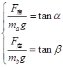 根据受力分析可知,因为两者之间的库仑力相等,但是没法判断两者电荷量之间的关系,所以B错。由于β>α,所以,所以AD正确。,所以,所以C对。