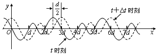 4、选择题  如图所示,实线和虚线分别为某种波在t时刻和t+Δt时刻的波形曲线。B和C是横坐标分别为d和3d的两个质点,下列说法中正确的是