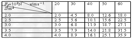 4、实验题 汽车正在走进我们的家庭。研究发现,在无风状态下,汽车在高速行驶时受到的空气阻力Ff主要与汽车正面投影面积S和汽车行驶速度v有关。通过汽车在风洞实验室模拟实验得到如下数据: