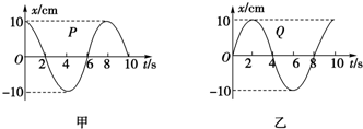 5、简答题 一列简谐横波沿直线传播,P、Q是这一直线上的两点,其间距PQ=30m,已知P、Q的振动图象分别如图甲、乙所示.