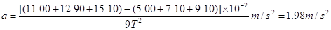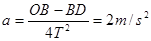 本题解析:每两点间的时间间隔为0.02s,因此两个计数点间的时间间隔为0.1s,A点为OB两点的中间时刻,因此,加速度大小可根据逐差法求得