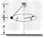 5、计算题  如图所示,用细线吊着一个小球,使小球在水平面内做半径为R的匀速圆周运动;圆周运动的水平面与悬点的距离为h,与水平地面的距离为H。若细线突在A处断裂,求小球在地面上的落点P与A的水平距离。