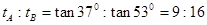 1、填空题 如图所示,两斜面的倾角分别为37o和53o,在顶点把A、B两个相同的小球同时以相同大小的初速度分别向左、右水平抛出,小球都落在斜面上,不计阻力,则先落到斜 面上的是___小球,且A、B两小球运动时间之比为________。(sin37o =0.6,sin53o =0.8)