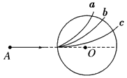 4、选择题 圆形区域内有垂直于纸面的匀强磁场,三个质量和电荷量都相同的带电粒子a、b、c,以不同的速率沿着AO方向对准圆心O射入磁场,其运动轨迹如图所示。若带电粒子只受磁场力的作用,则下列说法正确的是