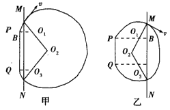 参考答案:解:由题意知有两种可能轨迹,示意图分别如图甲、乙所示