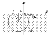 从A点射出磁场,设O、A间的距离为L,射出时速度的大小仍为v,射出方向与x轴的夹角仍为θ,由洛伦兹力公式和牛顿定律可得: