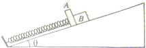 5、选择题 如图所示,在倾角为θ的斜面上,轻质弹簧一与斜面底端固定,另一端与质量为M的平板A连接,一个质量为m的物体B靠在平板的右测,A、B与斜面的动摩擦因数均为μ.开始时用手按住物体B使弹簧处于压缩状态,现放手,使A和B一起沿斜面向上运动距离L时,A和B达到最大速度v.则以下说法正确的是( )