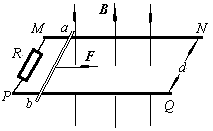 5、选择题 如图所示,水平面上的平行粗金属导轨MN与PQ的左端连接一个定值电阻R,导体棒ab可以在导轨上无摩擦地滑动,滑动过程中总保持与导轨垂直,并且接触良好.空间存在着方向竖直向上的匀强磁场,磁感强度为B,ab棒的电阻为r,两导轨间距为d,导轨电阻不计.用水平向右的恒定拉力F拉动ab棒,稳定后作匀速运动的速度v=5.0m/s.只进行如下的哪项改变,可以使ab棒稳定后作匀速运动的速度v变为2.5m/s?