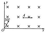 4、选择题 如图所示,匀强磁场分布在平面直角坐标系的整个第I象限内,磁感应强度为B.方向垂直于纸面向里。一质量为m、电荷量绝对值为