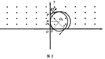 当粒子通过y轴时速度方向沿y轴正向时,粒子运动的轨迹如图2所示