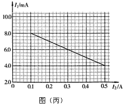 (2)该同学根据上述设计的实验电路测出多组数据,绘出图(丙)所示的I1~I2图线(I1为电流表A1的示数,I2为电流表A2的示数)。由图线可以得到该层叠电池的电动势E=_____________V,内电阻r=_____________Ω。(保留两位有效数字)