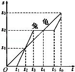 3、选择题 龟兔赛跑的故事中,按照故事情节,兔子和乌龟的位移图象如图所示,由图可知( )