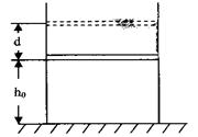 5、计算题 (10分)如图所示,在竖直放置的圆柱形容器内用质量为m的活塞密封一部分气体,活塞与容器壁间能无摩擦滑动,活塞的横截面积为S 。开始时气体的温度为T0,活塞与容器底的距离为h0,当气体从外界吸收热量Q后,活塞缓慢上升d后再次平衡,已知大气压P0恒定不变。求:①再次平衡时气体的温度是多少?②在此过程中密闭气体的内能增加了多少?