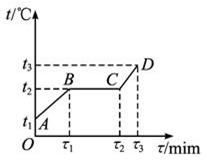 2、简答题  (10分)如图所示,试说明晶体从开始加热到全部熔化为液体的过程中能的转化情况(分熔化前、熔化时、熔化后三个阶段说明)。