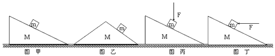 2、选择题 质量为M的斜面体放在粗糙的水平地面上,质量为m的物体放在粗糙的斜面上,在下面四种情况下M、m均处于静止状态,关于地面对M摩擦力的方向说法正确的是