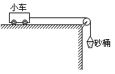 3、填空题 (6分)如图所示,水平桌面上有一小车,装有砂的砂桶通过细绳给小车施加一水平拉力,小车从静止开始做直线运动。保持小车的质量M不变,第一次实验中小车在质量为m1的砂和砂桶带动下由静止前进了一段距离s;第二次实验中小车在质量为m2的砂和砂桶带动下由静止前进了相同的距离s,其中m1<m2<M。两次实验中,绳对小车的拉力分别为T1和T2,小车、砂和砂桶系统的机械能变化量分别为ΔE1和ΔE2,若摩擦阻力的大小保持不变,不计绳、滑轮的质量及空气阻力,则ΔE1/ΔE2= ,T1 /T2= 。