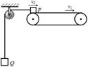 1、选择题 如图所示,水平传送带以速度v1匀速运动,小物体P、Q由通过定滑轮且不可伸长的轻绳相连,t = 0时刻P在传送带左端具有速度v2,已知v1>v2,P与定滑轮间的绳水平。不计定滑轮质量,绳足够长。直到物体P从传送带右侧离开。以下判断正确的是( )