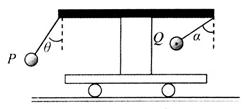 2、选择题 如图,一小车上有一个固定的水平横杆,左边有一轻杆与竖直方向成θ角与横杆固定,下端连接一质量为m的小球P。横杆右边用一根细线吊一相同的小球Q。当小车沿水平面做加速运动时,细线保持与竖直方向的夹角为α。已知θ<α,则下列说法正确的是( )