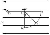 5、计算题 如图所示,在水平向左足够大的匀强电场中,一带电小球用绝缘轻绳悬于O点,平衡时小球位于A点,此时绳与竖直方向的夹角θ=53°,已知绳长L,B、C、D到O点的距离均为L,BD水平,OC竖直。