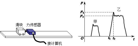 (1)由图乙知:在t1~ t2这段时间内,滑块的运动状态是?(填“运动”或“静止”),滑块受到的最大静摩擦力为?(填“F1”或“F2”)。